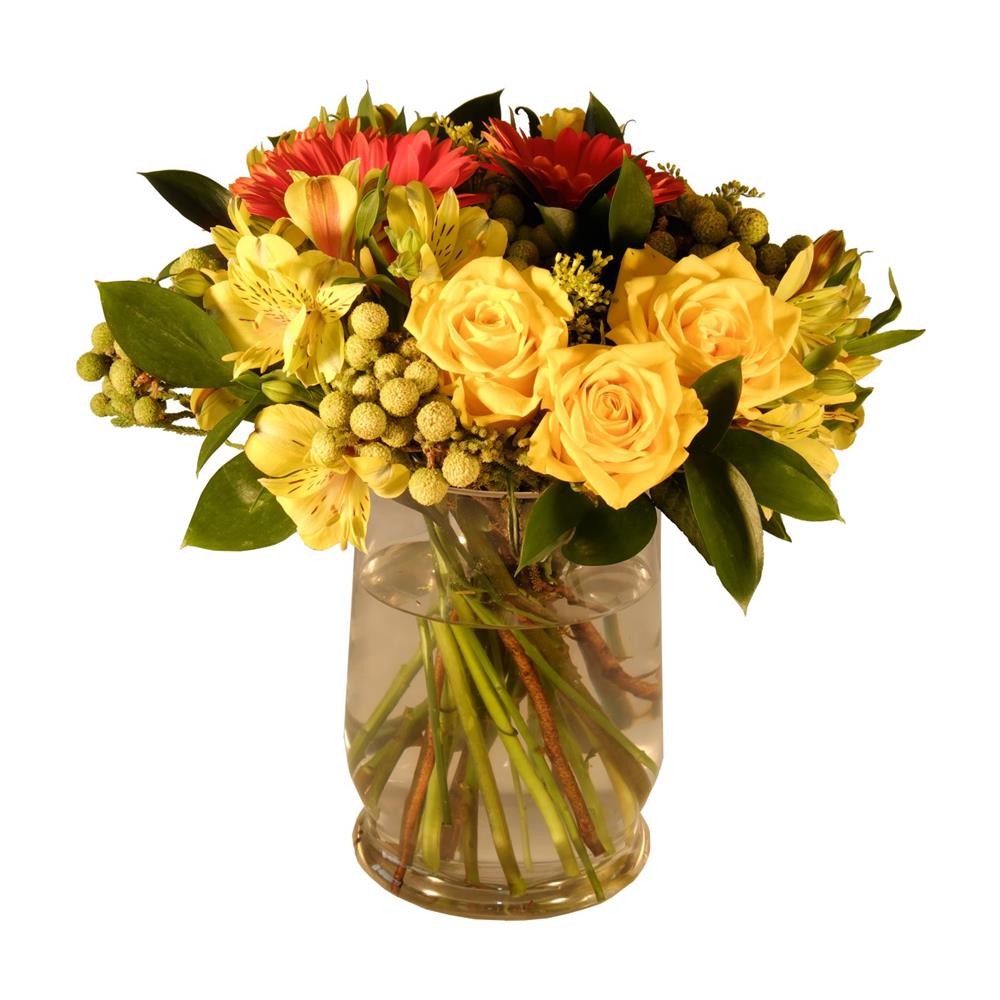 Bring a ray of sunshine into someone’s day with this beautiful bouquet of sunflowers, roses, and greenery. First Light captures the essence of a new day and symbolizes hope, renewal, and new beginnings. The bright yellow sunflowers are a symbol of joy and happiness, while the soft pink roses add a touch of sweetness and elegance. The lush greenery ties the bouquet together and adds a touch of natural beauty. This bouquet is perfect for any occasion, whether you’re celebrating a birthday, anniversary, or just want to brighten someone’s day. Handcrafted by our expert florists and delivered right to your door, First Light is sure to bring a smile to anyone’s face.